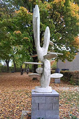 J’ai souhaité dialoguer avec cette œuvre "Cactus" d'Emiel Poetou car j’ai été particulièrement séduite par l’audace de son insertion dans le parc, une végétation bien incongrue parmi les espèces autochtones. Mais aussi par son langage stylisé, presqu’abstrait, permettant une lecture guidée par le caractère organique de l’œuvre, tout en rondeurs, aux proportions audacieuses, offrant des vues différentes sous chacun de ses angles.
